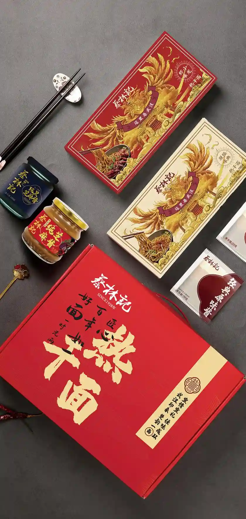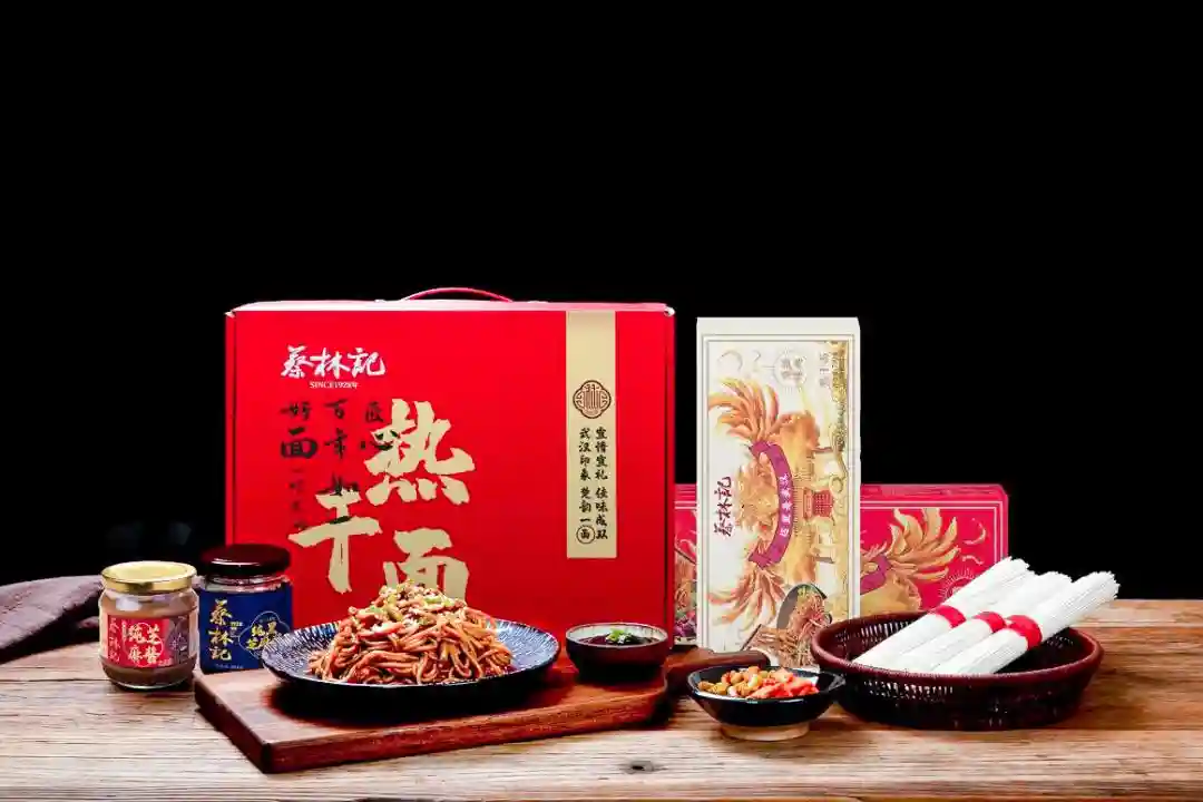 蔡林记热干面礼盒内含多口味的热干面与芝麻酱,外包装是自创IP“九凤”。用国潮手绘的方式将传统“凤凰”文化符号赋予新时代生命力,蕴含着蔡林记振翅高飞的美好期愿。该礼盒目前已在线上线下同步上线优惠,在武汉市内门店皆可购买。