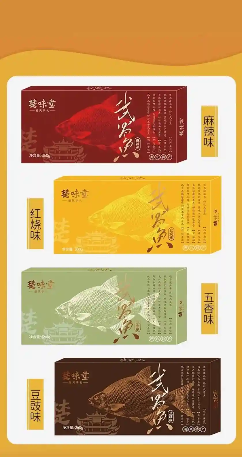 此外,楚味堂制作武昌鱼有一套专门的生产工艺,即选用活的武昌鱼,处理干净后低温腌制、智能风干,最大限度保证鱼制品的本味、营养和干度。风干后进入自制卤制、真空拌料环节,最后还要杀菌。完成这一系列操作后,只有经过验收合格的武昌鱼才能装盒上市。
