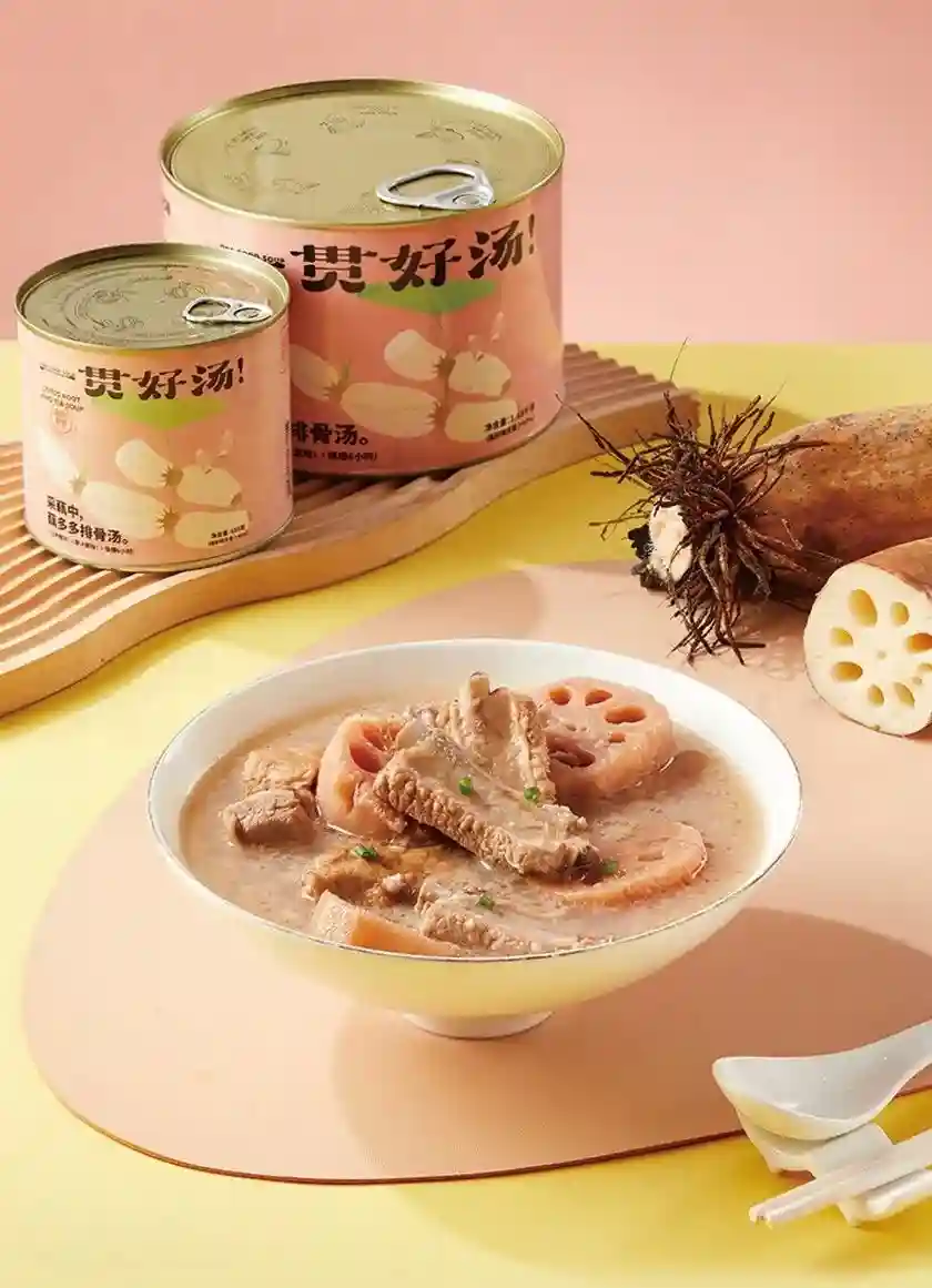 这款能带走的排骨藕汤,由湖锦酒楼中国十大名厨、中国烹饪大师担当首席产品经理,亲自参与到制作的每个环节,通过现代工艺,还原了传统煨汤技法的口感,配料干净,再采用马口铁罐物理密封保鲜。