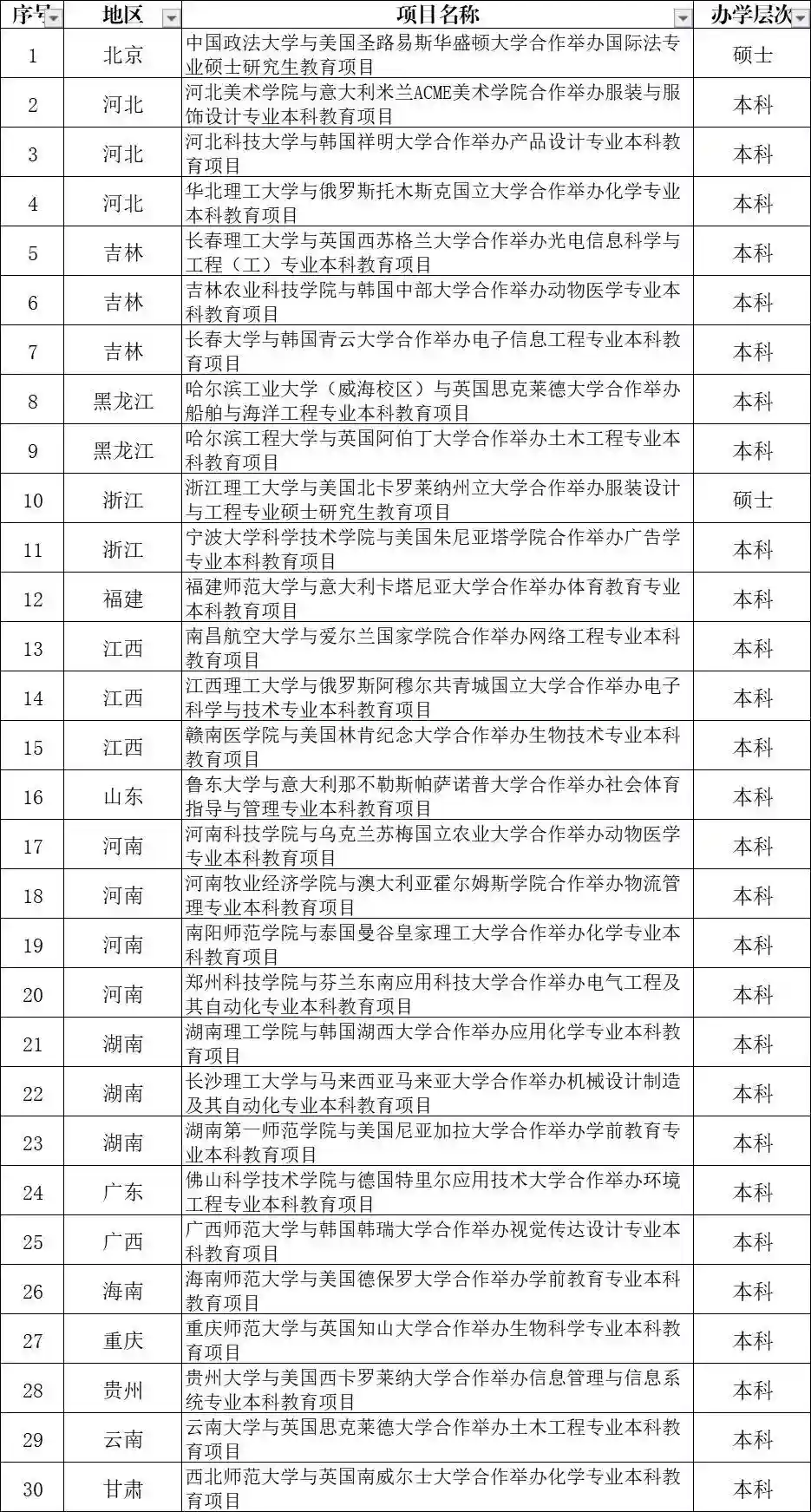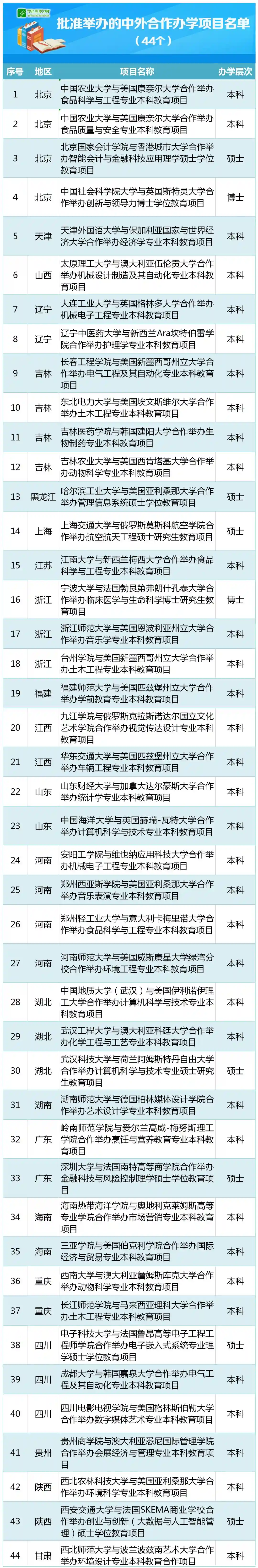 此前,教育部曾印发《关于批准2019年下半年中外合作办学项目的通知》,批准44个本科以上中外合作办学项目。