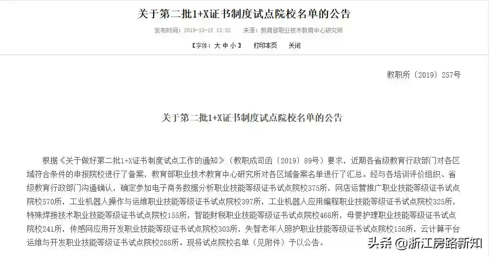 确定第二批1+X证书制度试点院校