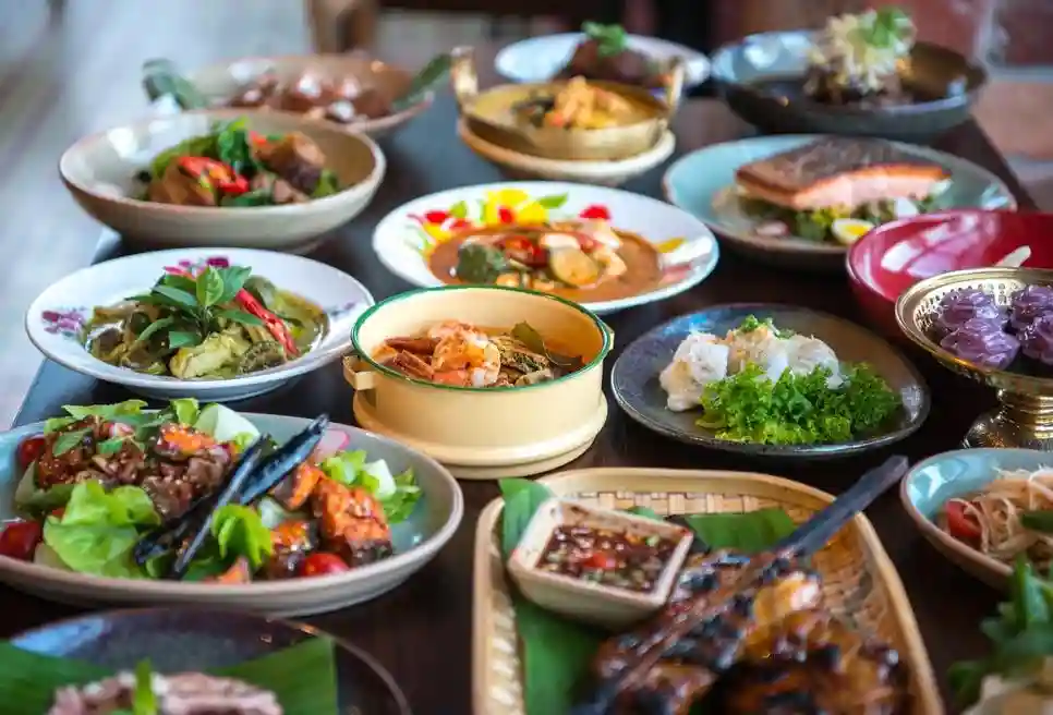 泰国菜的主要成分是大米、鱼和蔬菜,对于英国人来说是比较健康的食物。