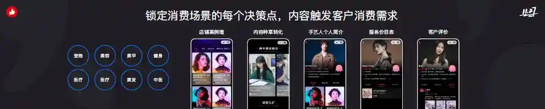 有赞美业是我们给美容美发美甲医美等一切美相关的服务业提供的垂直行业解决方案,我们的目标是打造符合品牌调性的内容型店铺,提升种草转化。