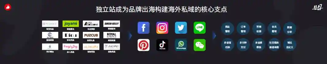 品牌出海正在经历由流量思维转向用户思维,独立站是品牌出海构建海外私域的核心阵地,过去一年我们开始对接更多海外社交平台,服务了一批跨境出海的品牌。