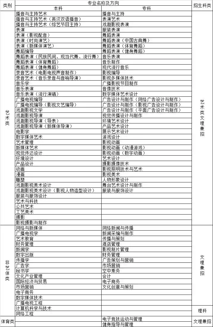注:各省(市、自治区)招考专业(方向)以当地招生考试主管部门公告为准。