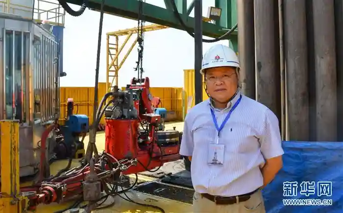 黄大年在松辽盆地大陆科学钻探2号井现场(2014年8月8日摄)。新华社发