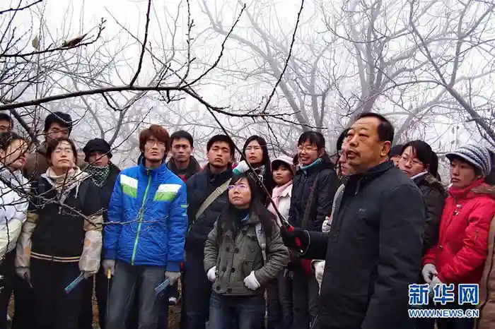 李保国(前)带领学生实习(2009年11月29日摄)。新华社发