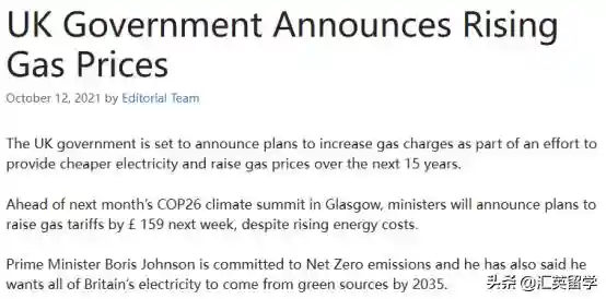 英国政府计划涨天然气费
