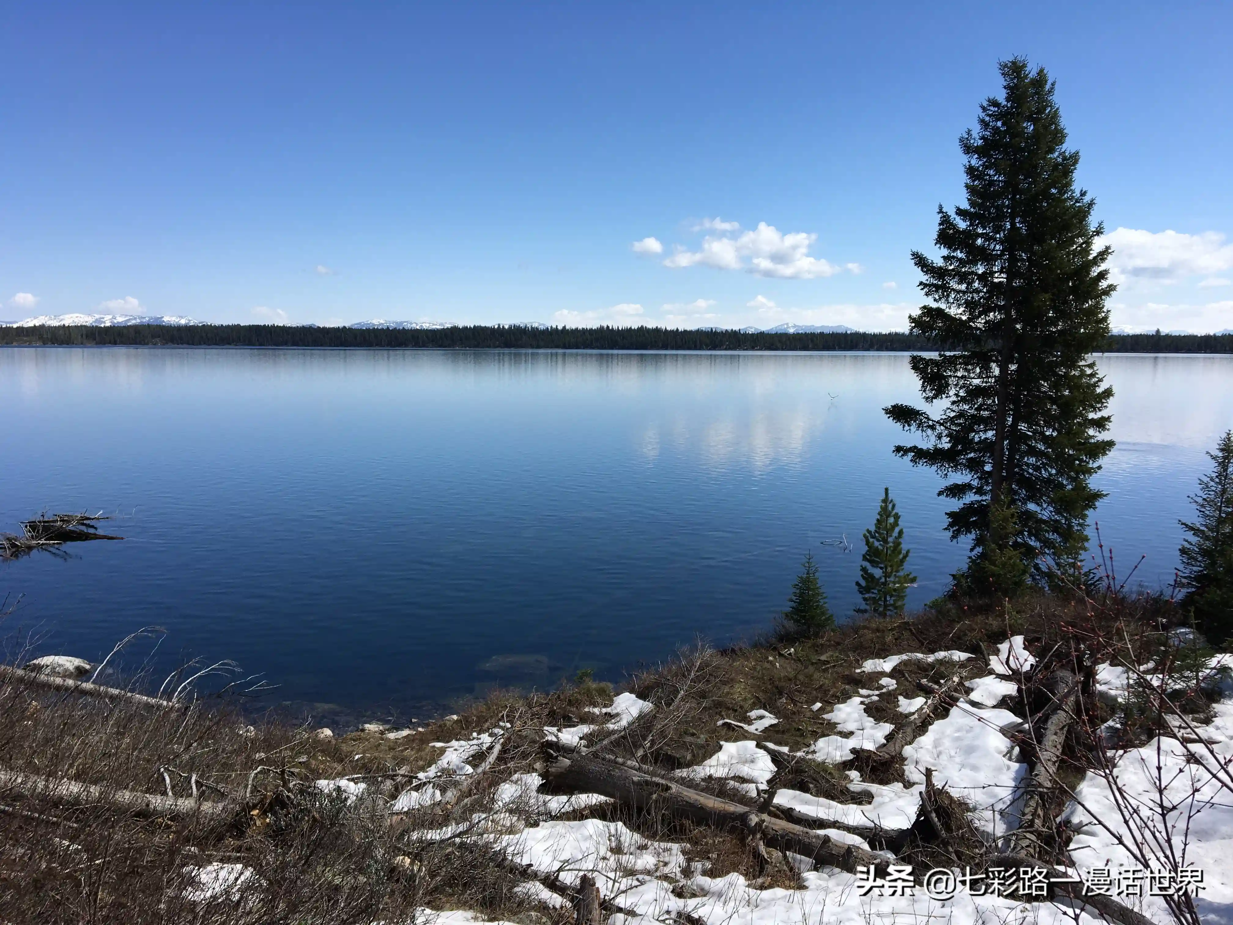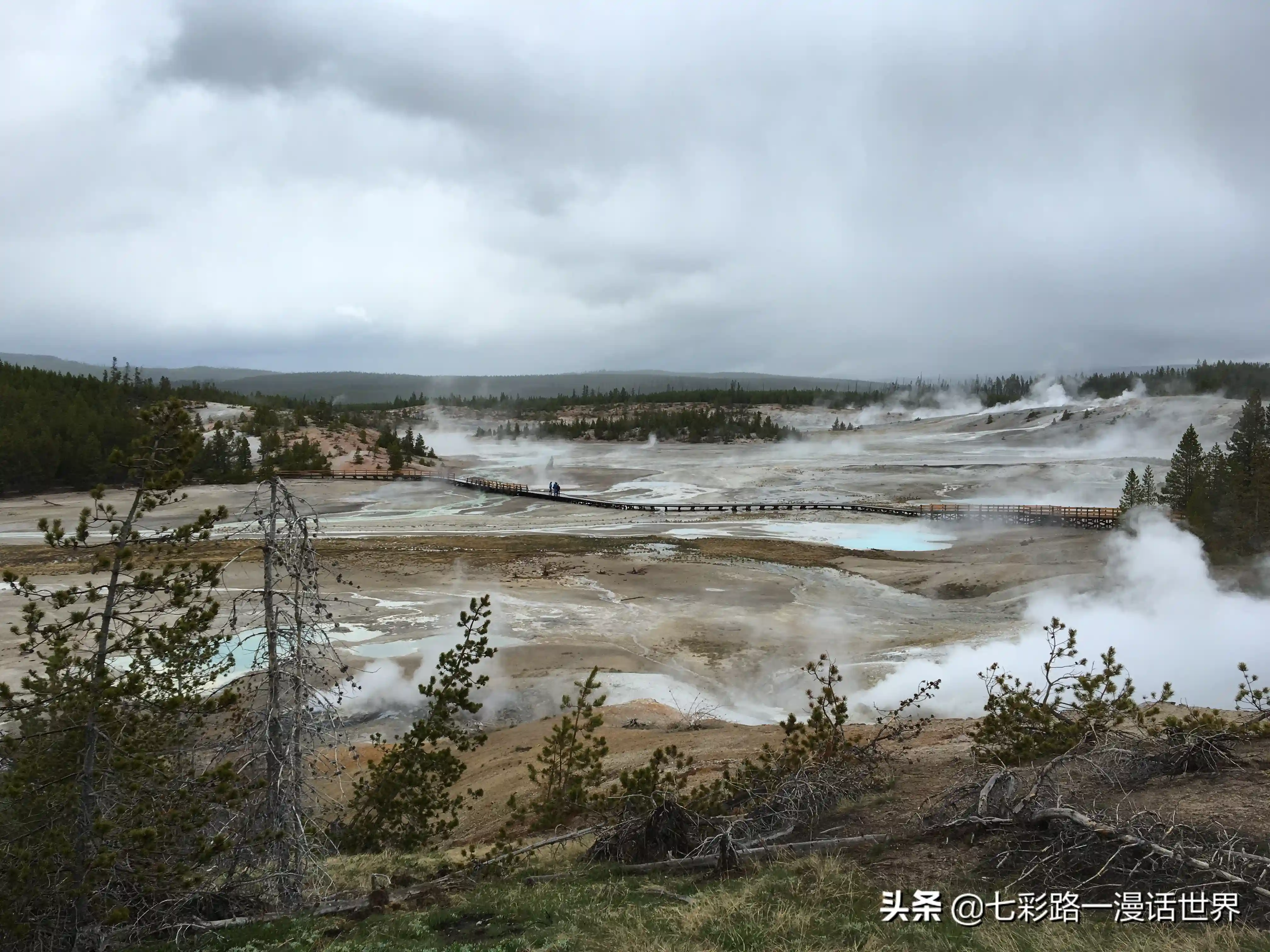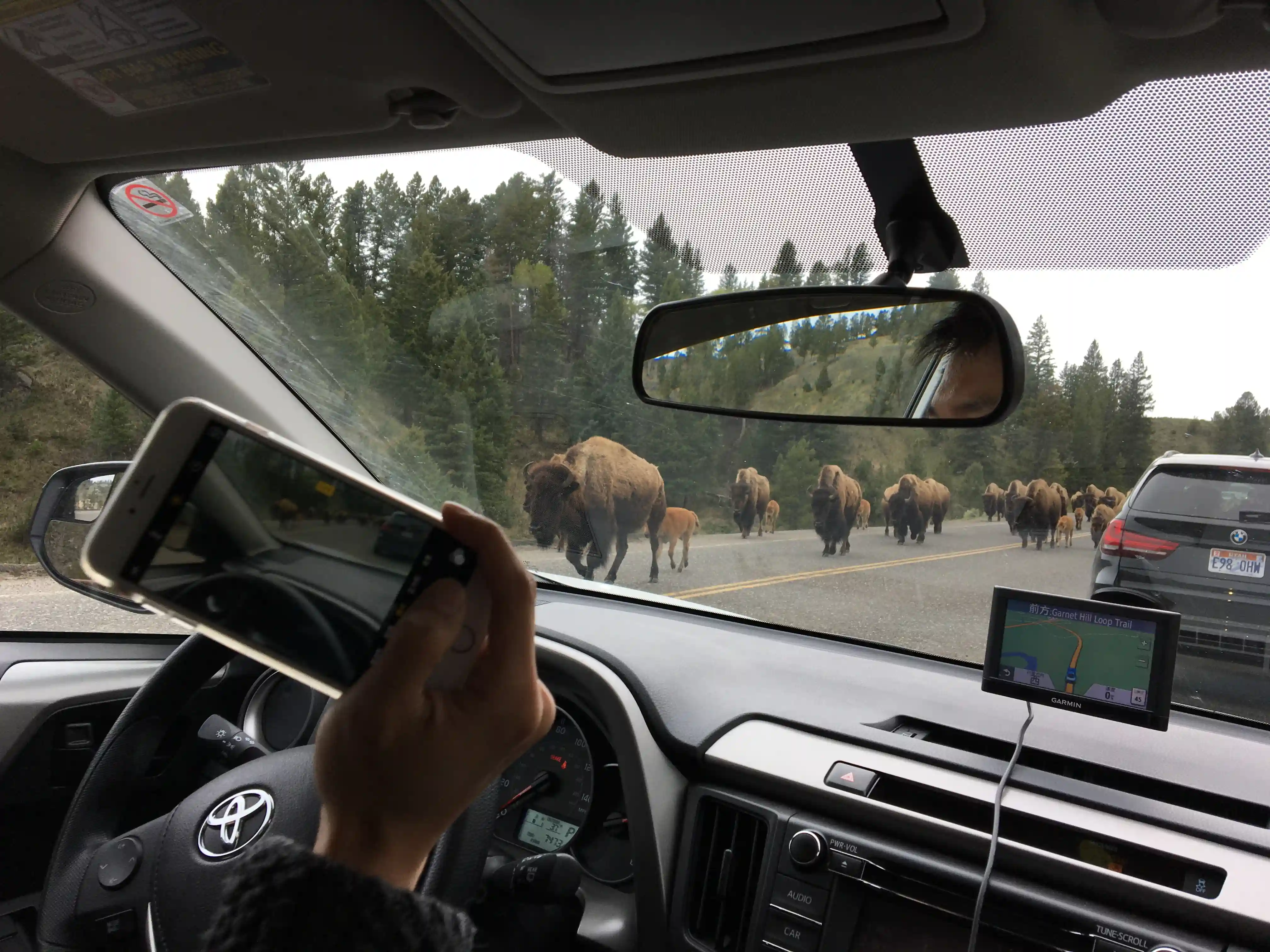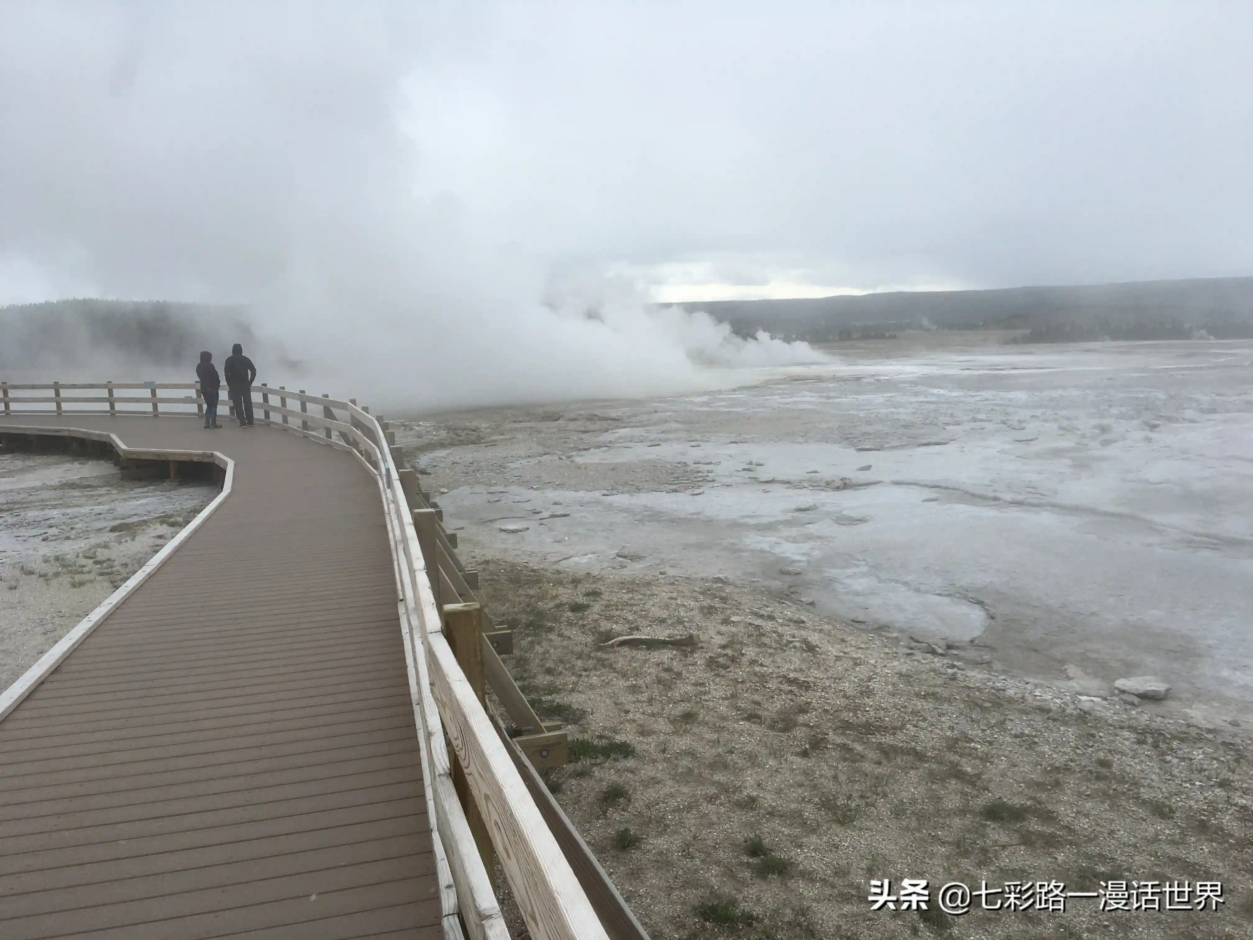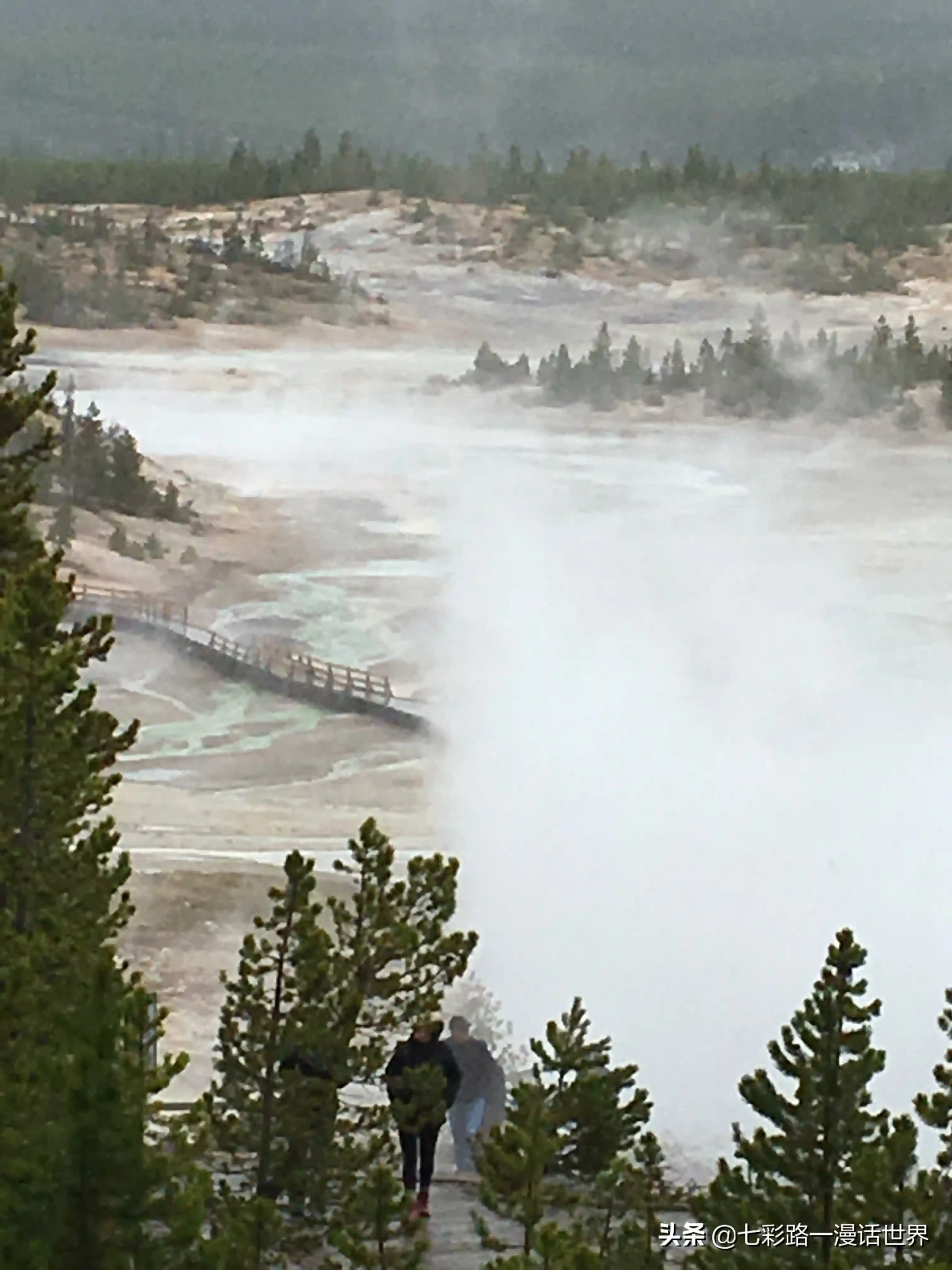 黄石公园:我们在黄石国家公园,黄石公园线路呈“8”字路线,至少需要2天的时间才能游玩,除此之外,我们还驱车往东北方向,因为那边的野生动物比较多,我们在路上,看到远处的熊和狼。