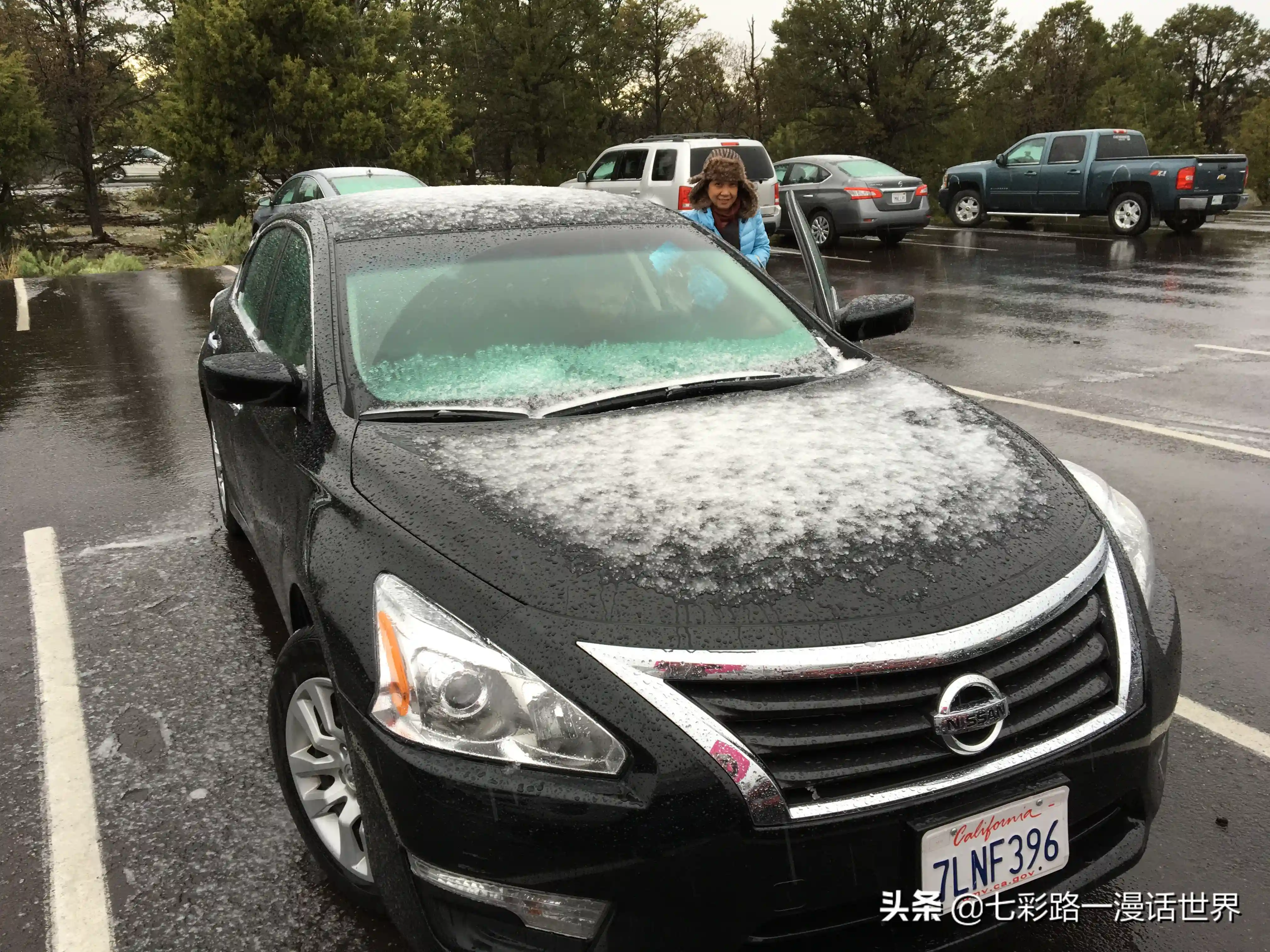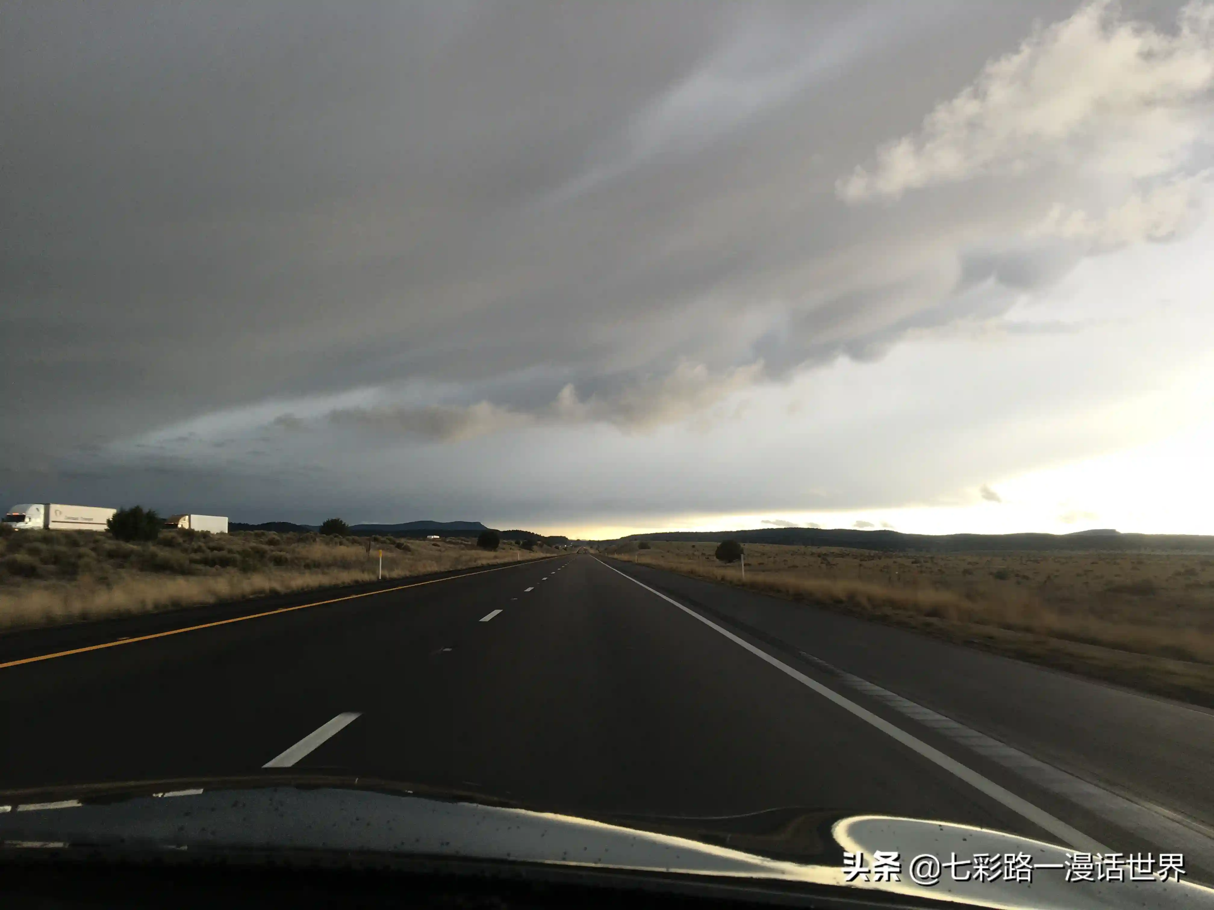 当天我们要赶到拉斯维加斯住,游玩三条线路后,我们返程。一路上风雨交加,雷电中掺加着冰雹,温度骤降,天气很异常。