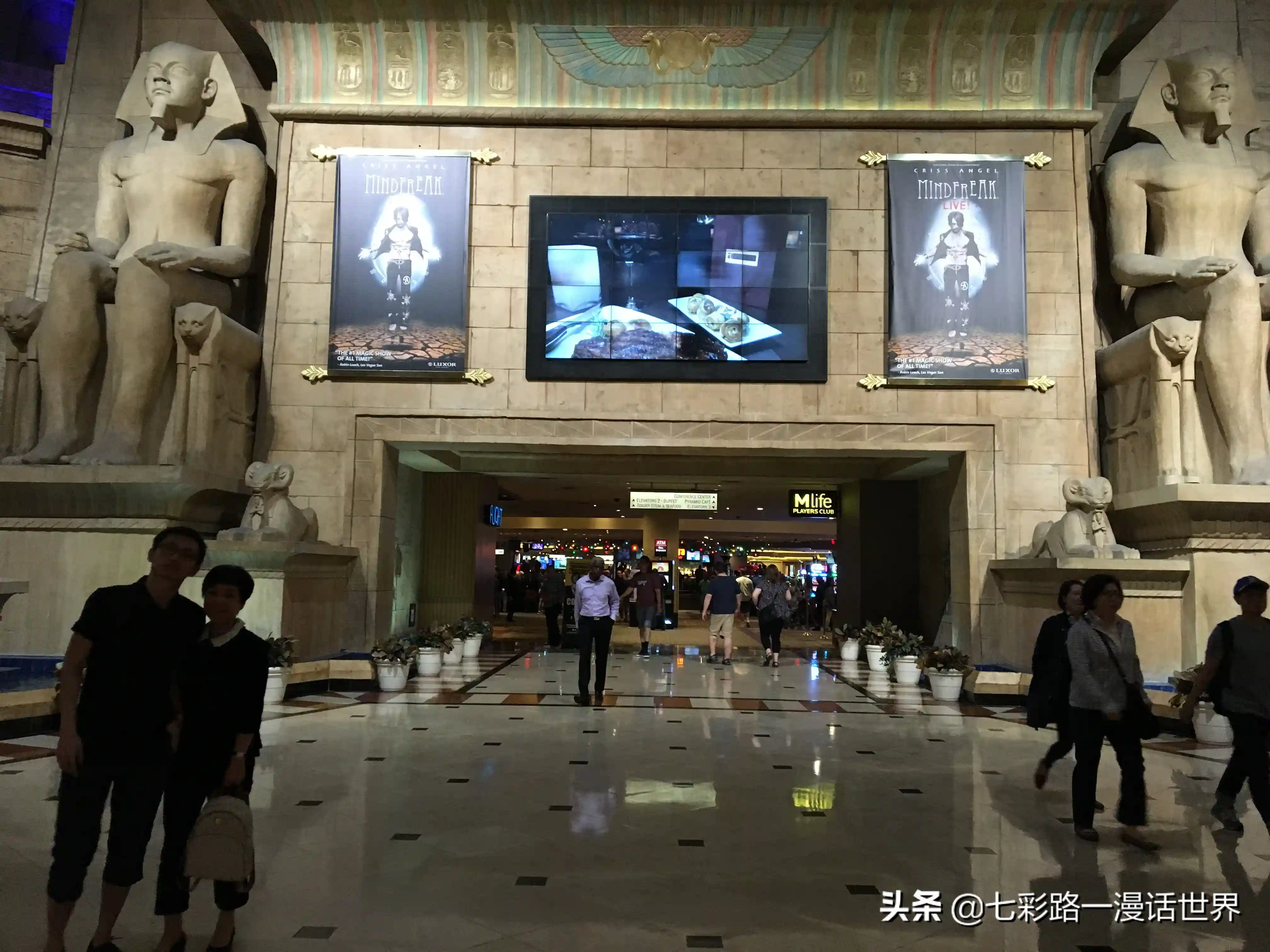 晚上7点多到达拉斯维加斯。我们预定的是LUXOR金字塔酒店,这家酒店有些年头了,但依然是客满为患,办理入住手续都要近1小时,我们订的是套房,因为我们是一家三口,标房是不够住的。