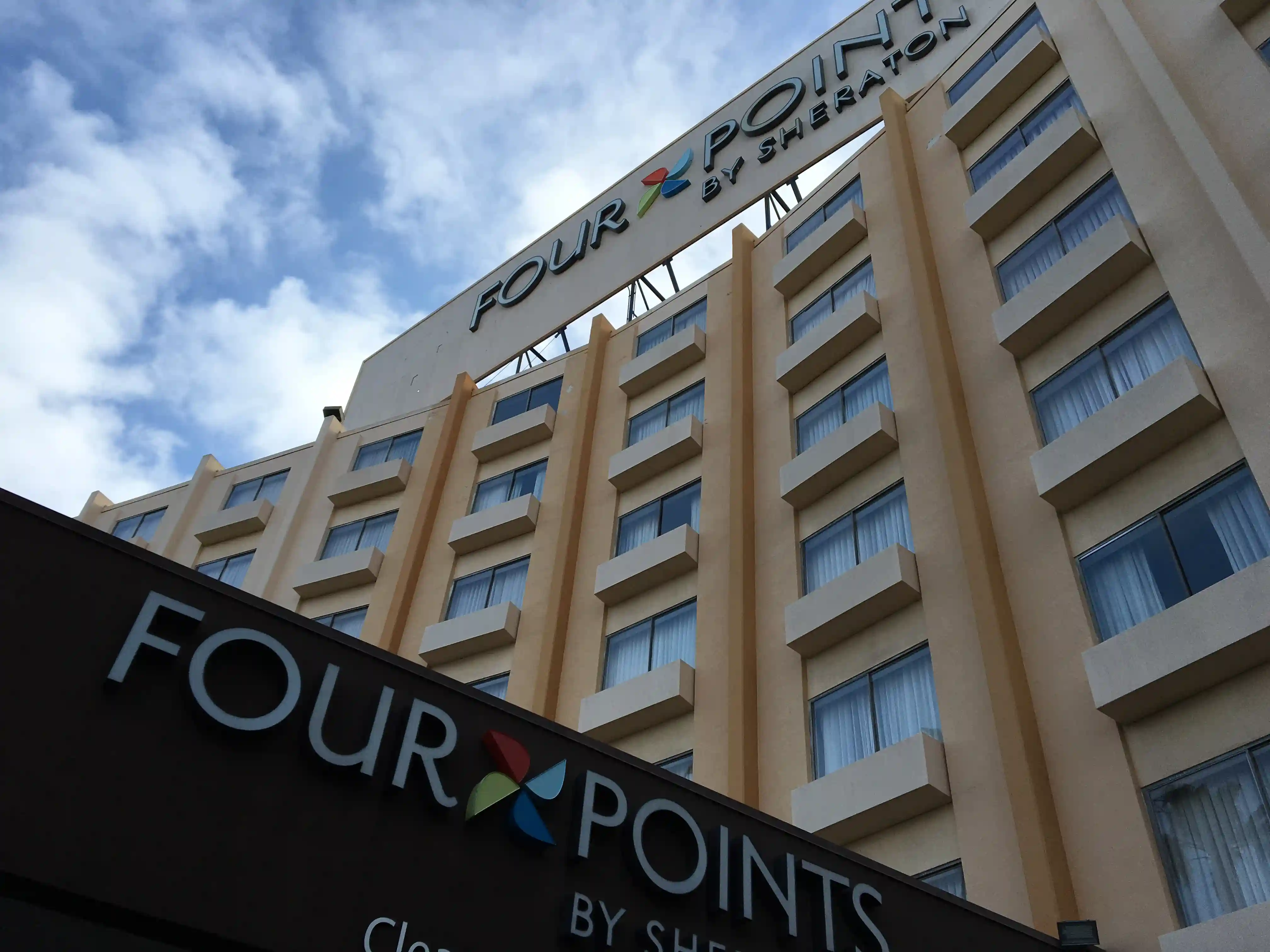 经过12个多小时的长途飞行,于28日晚达到洛杉矶国际机场,已是当地时间晚上9点多,办理完入关手续后,入住FOURPIONTSBYSHERATION酒店,酒店离机场很近,就在机场停车场附近,旁边还有快餐店,如汉堡王等。