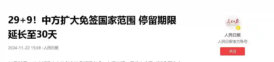 再次扩大免签范围!就在11月22号外交部例行记者会上,发言人林剑表示:中方决定自11月30号起扩大免签国家范围,对新增的9个国家持普通护照人员实行免签政策,这意味着未来一段日子里,到访中国的外国游客数量将激增,促进国内旅游业发展,拉动经济增长。