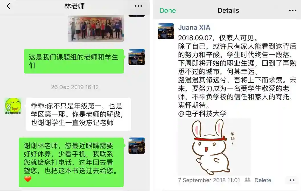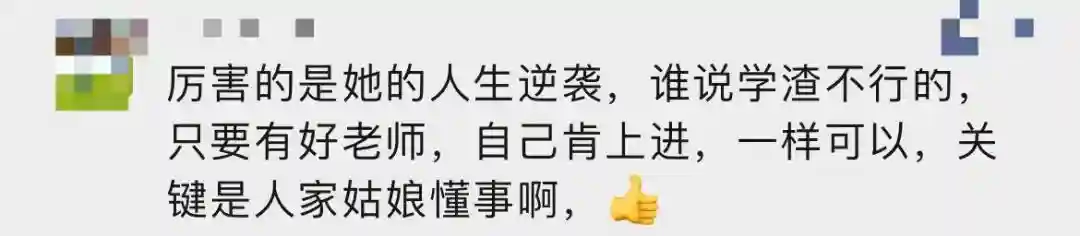 到中学时,她由于年纪太小,班上排名一直倒数一二。但她遇到一位恩师,“林老师在我初中三年的教育和陪伴,是我学习生涯以及人生的转折点。”