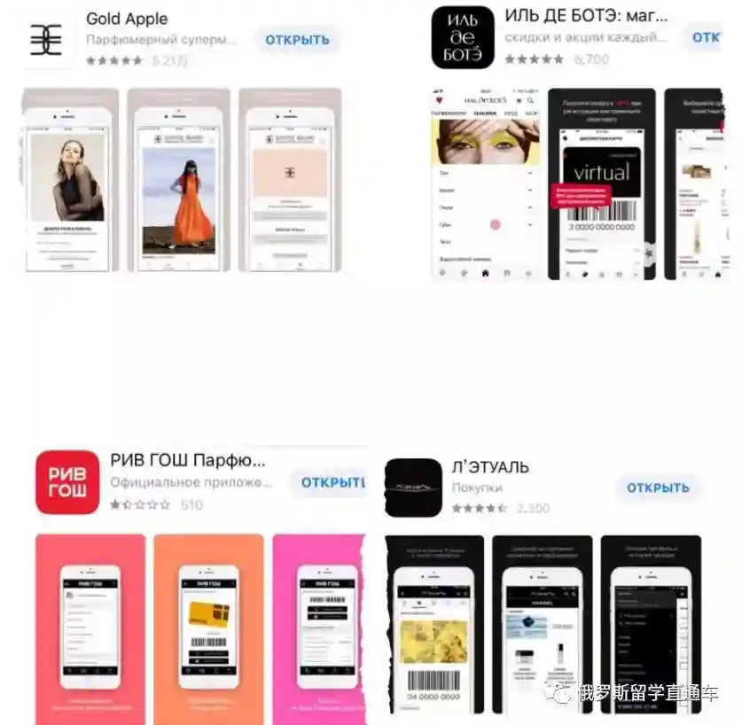 下图中红色虚线内框出来的就是俄罗斯最出名最普及的四家化妆品连锁商店。里面既包含了香奈儿、迪奥、阿玛尼、纪梵希等奢侈品牌,也有欧莱雅、妙巴黎、蜜丝佛陀等偏平价的品牌。护肤品、彩妆、香水一应俱全。还有不定期的大折扣优惠活动,剁起手来也不觉得那么疼了呢。这四家里除了GoldApple金苹果的网店为网址(/action)以外,其余三家的app即为网店(金苹果的app主要是折扣信息和购买记录等),可根据品牌名称的首字母来查找,也可以根据优惠活动包含的产品类别来了解详情。重点来了!在四家店消费时一定要记得办理打折卡,每次会根据消费数额向卡内积分,积到一定数额就会升级为折扣最高(25%,相当于七五折)的VIP卡,此卡主要用于非折扣季购买商品和购买香奈儿阿玛尼迪奥商品时打折用(据观察这三个牌子是最不爱参加折扣季活动的,如果赶上了,那就是超级的幸运哦)。在app上可以绑定折扣卡方便在网店购买时打折,下单后可以选择送货上门或是自行去店里取,市区内下单超过1500卢布即可免费送货上门,最快的也要两天左右送达。