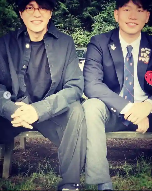 日前陈坤晒出和儿子的合影,陈尊佑穿着正式的校服,看上去非常成熟,而陈坤一身宽松的潮流装扮很是减龄,父子俩同框,完全就像是兄弟。