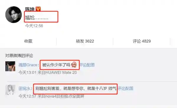 43岁的陈坤因为少年感登上热搜,他本人也是非常可爱地发文回应道:“尴尬……”,粉丝纷纷表示:“别尴尬别害羞,就是想夸你,就是十八岁,帅气”。