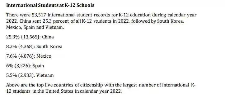 另外一边,中国富裕家庭豪掷千金,低龄留学热情不减。通过美国SEVIS数据显示,即使在疫情最严重的2022年,在美中国小留学生数量共计13565人。