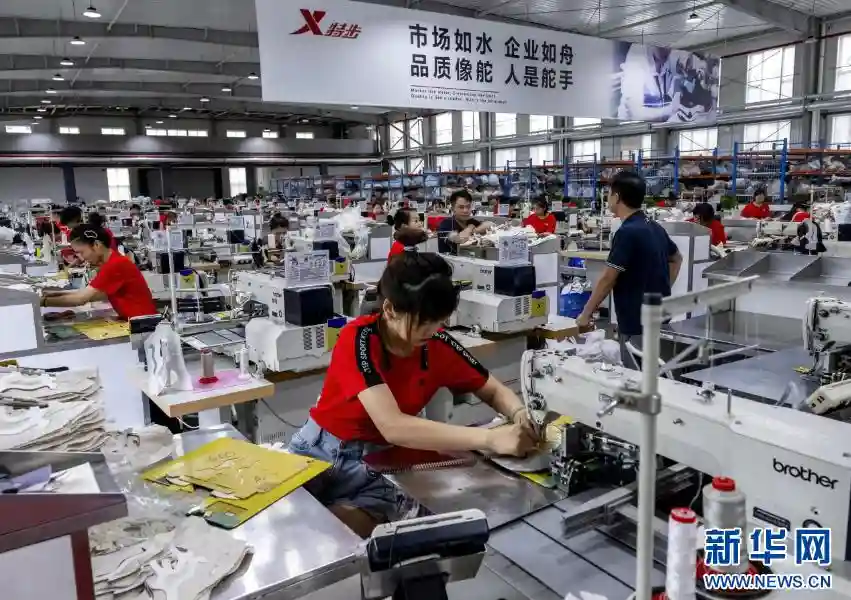 在特步集团的智能运动鞋生产线上,工人们在赶制出口订单。新华社记者魏培全摄