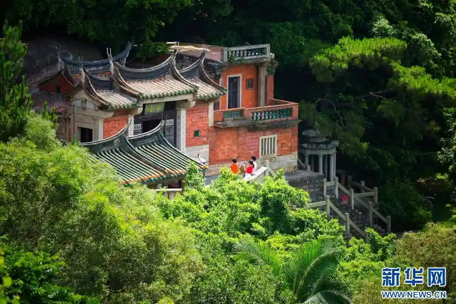图为绿树掩映的草庵。新华网发(赖进财摄)