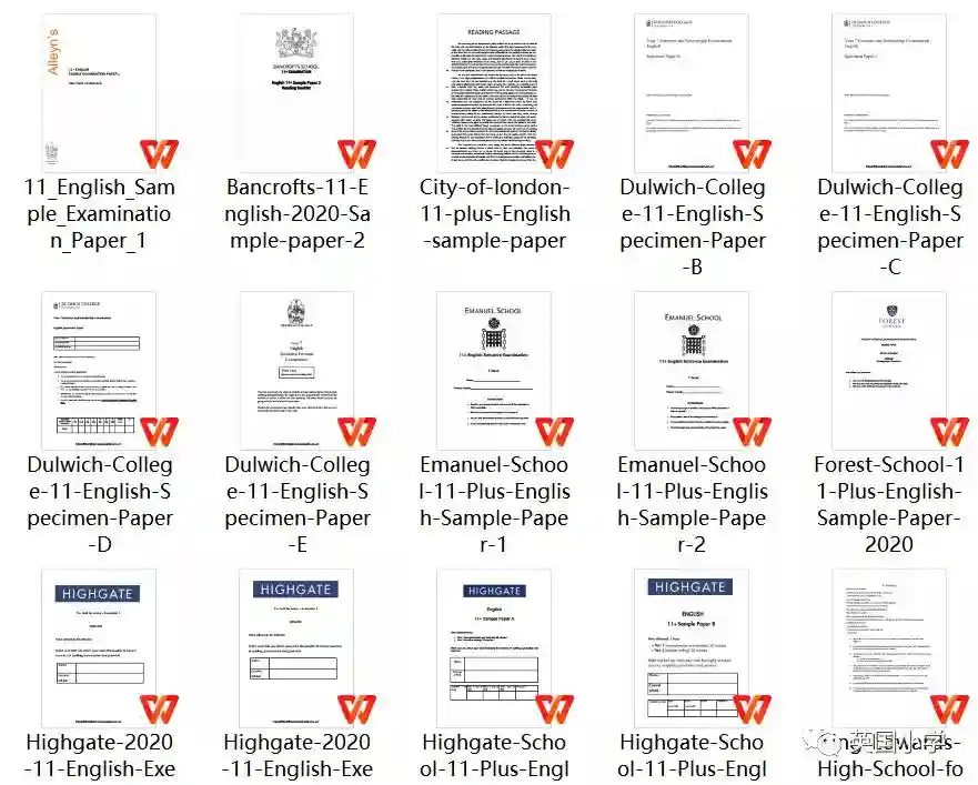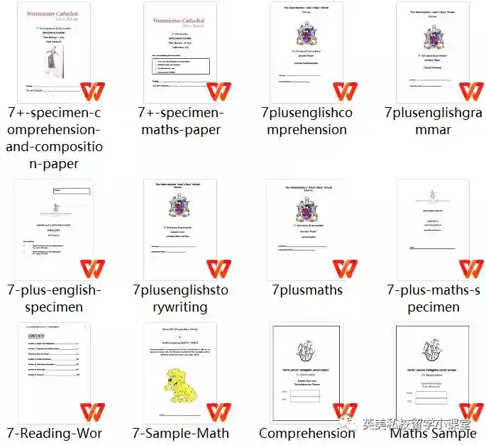 小编找来了还有德威公学、圣保罗女校、海格学校、英国七橡树中学等……12所学校的11+考试卷;
