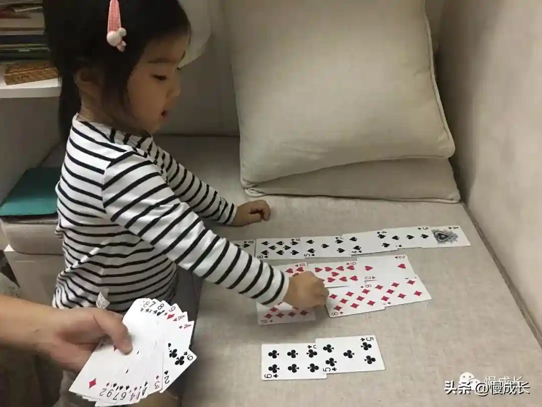 等孩子大点,有了数量对应的基础,就可以加入数字去比大小,渐渐地,减法的概念也在具象的游戏中,潜移默化形成了。