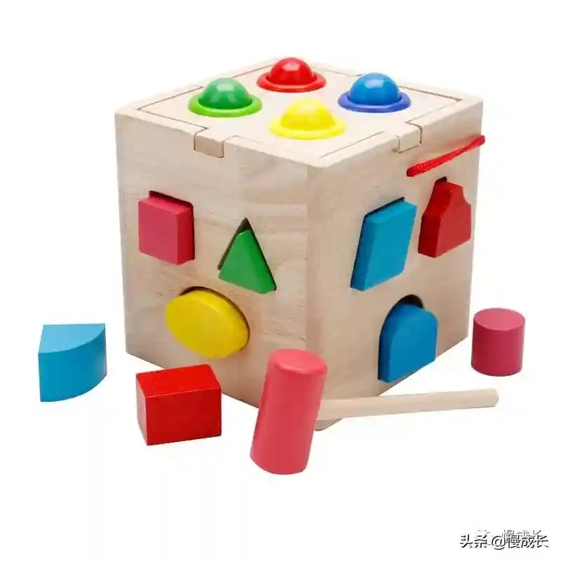 果果认识图形,同样是1岁左右开始的。很多玩具都有图形、颜色认知功能,例如积木。我们可以从教孩子认识这些图形的名称开始: