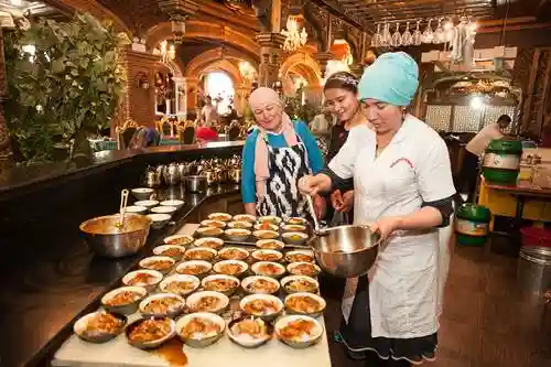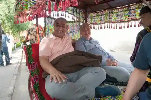 伊宁的喀赞其民俗街上,分布着极具维吾尔、俄罗斯等民族特色的百年民居。在这里,老外们坐上装饰着艾德莱丝绸的华丽“宝马车”,伴着清脆的马蹄声边走边看,还品尝了新鲜出炉的美味冰淇淋,不输哈根达斯哦!