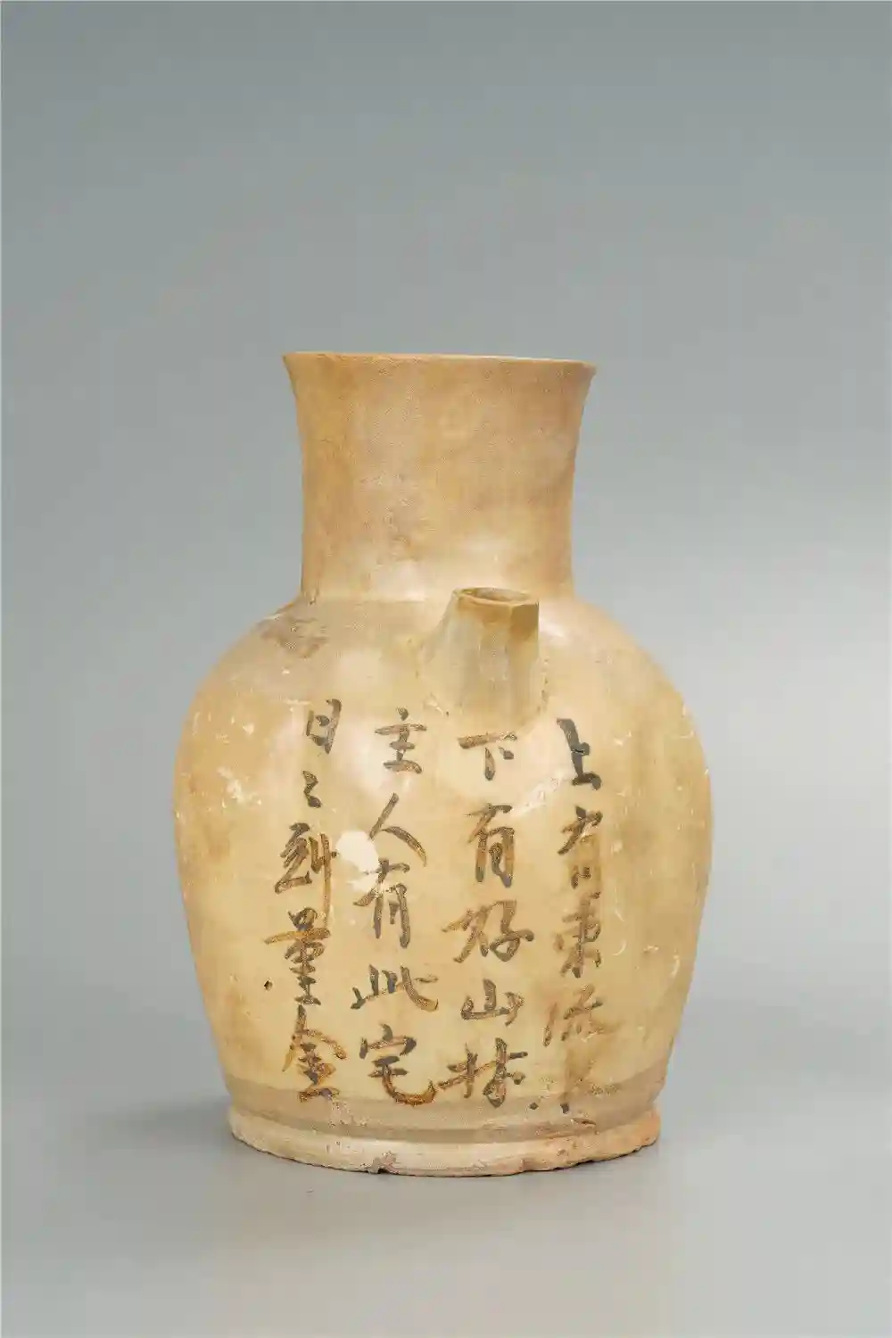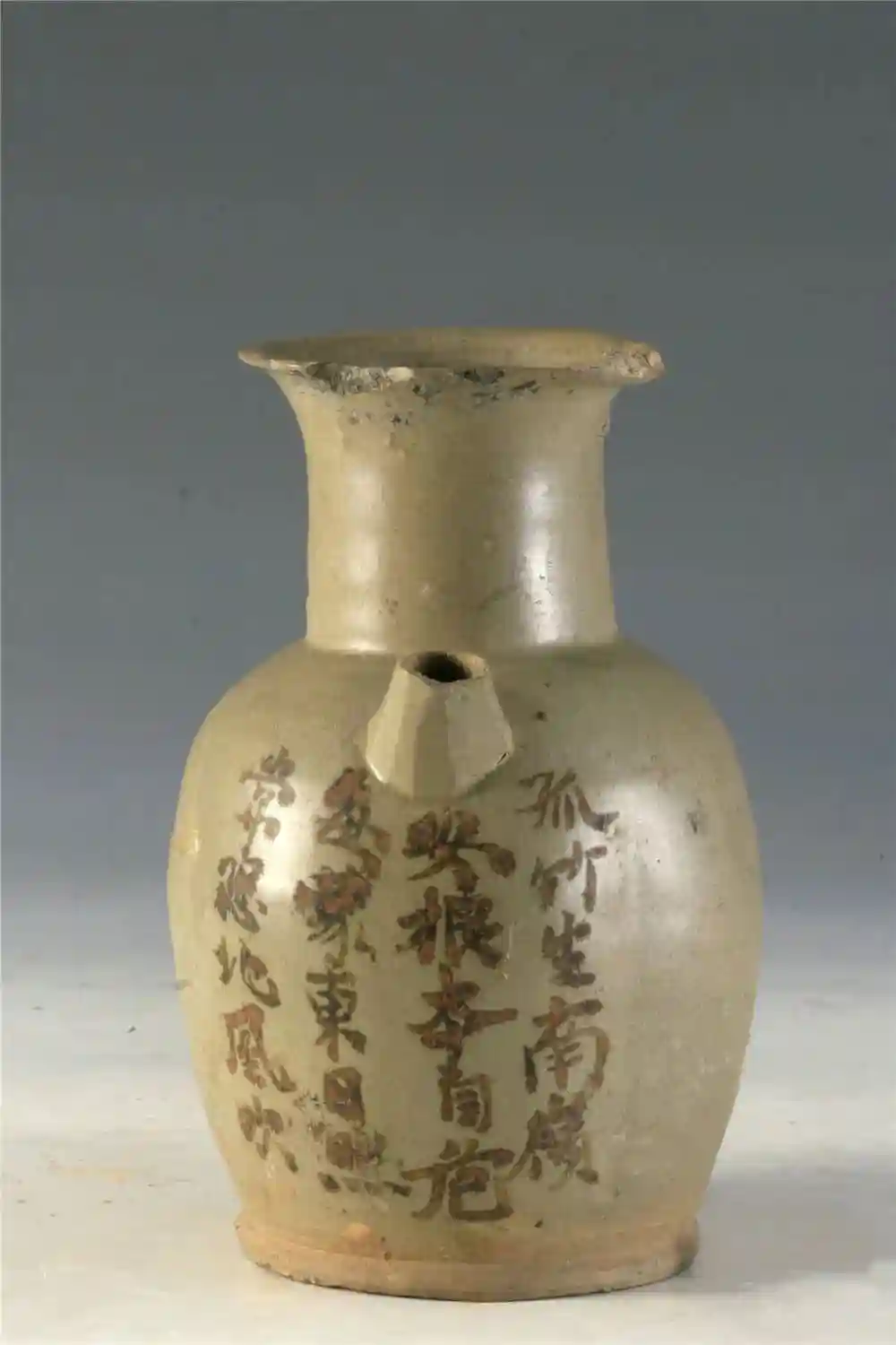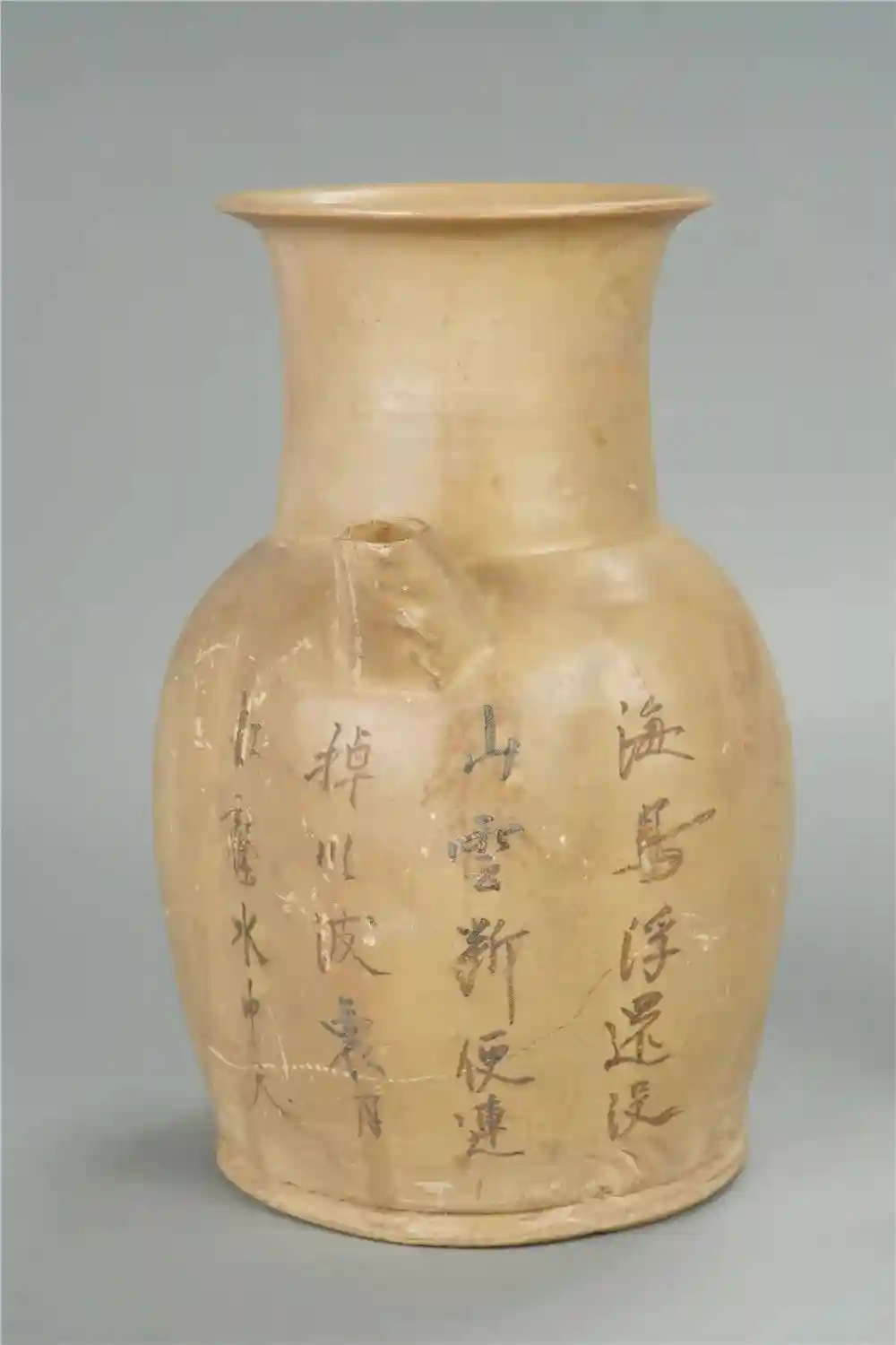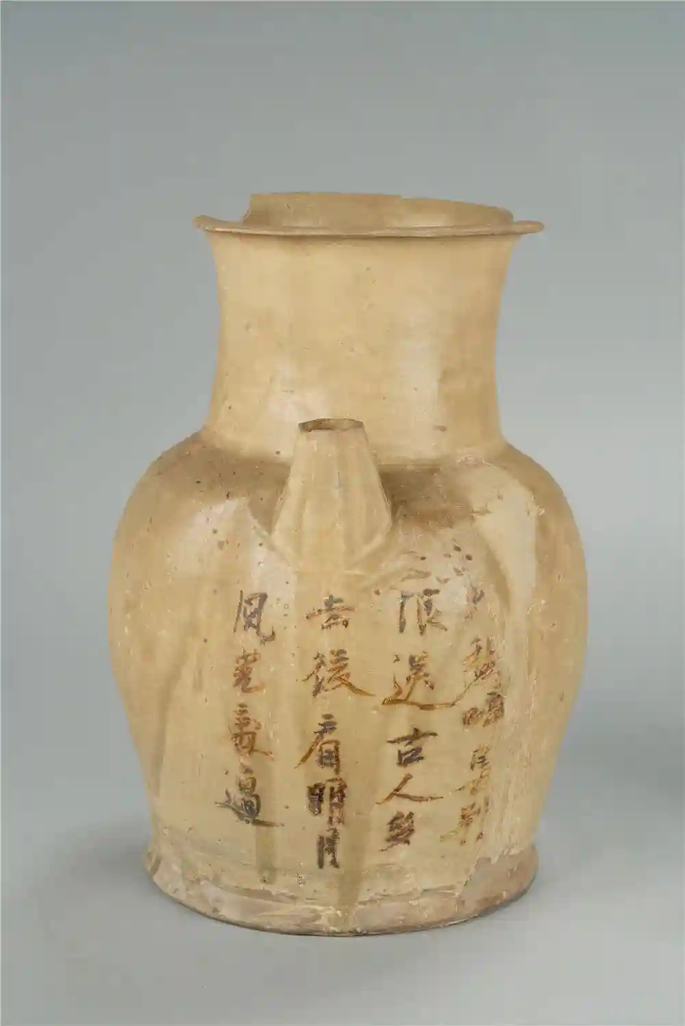题诗的器物多出现于瓷壶上,这大概与唐人品茶饮酒的生活方式有关,酒的意象在唐诗中也比比皆是。这不得不提到唐代酒业管理宽松,在市井山野皆有酒家林立。在酒器上题写饮酒诗,既富生活气息,喝酒也更有情致,透露出一种洒脱与豪放。