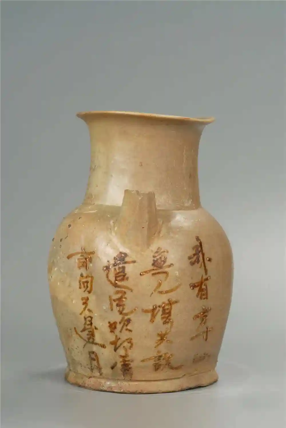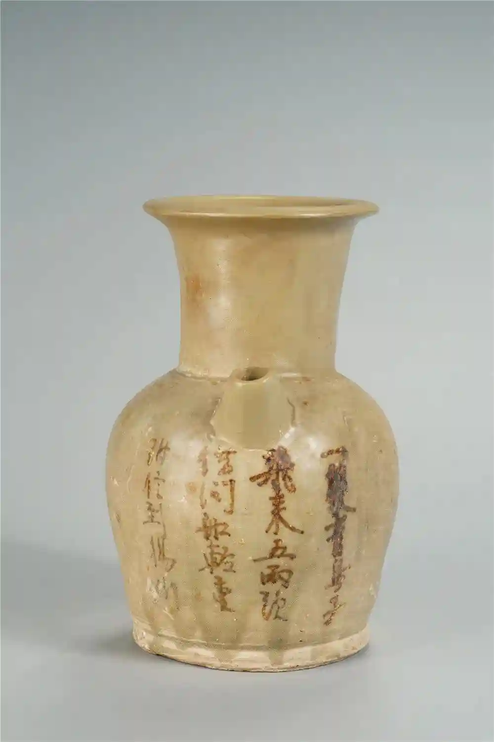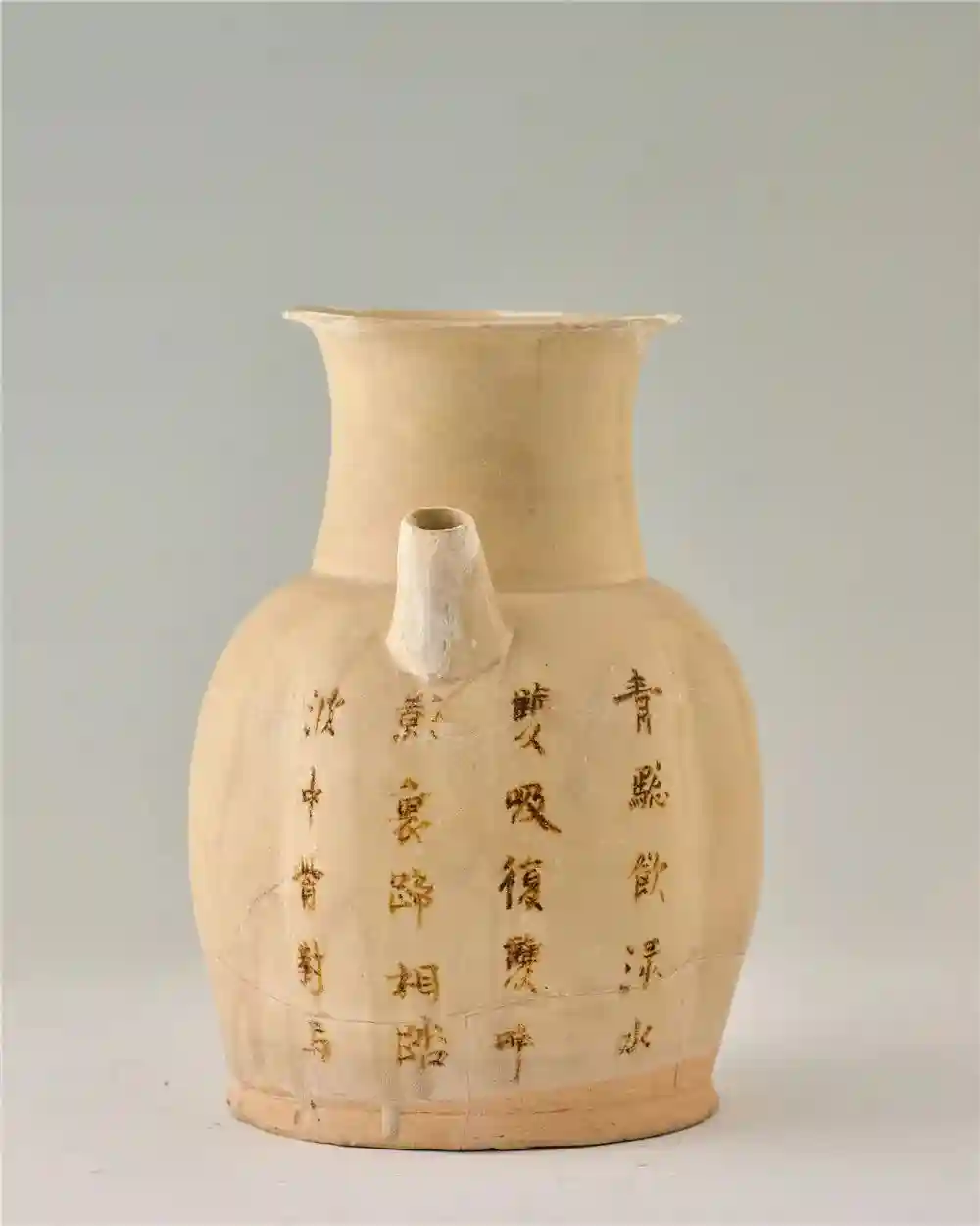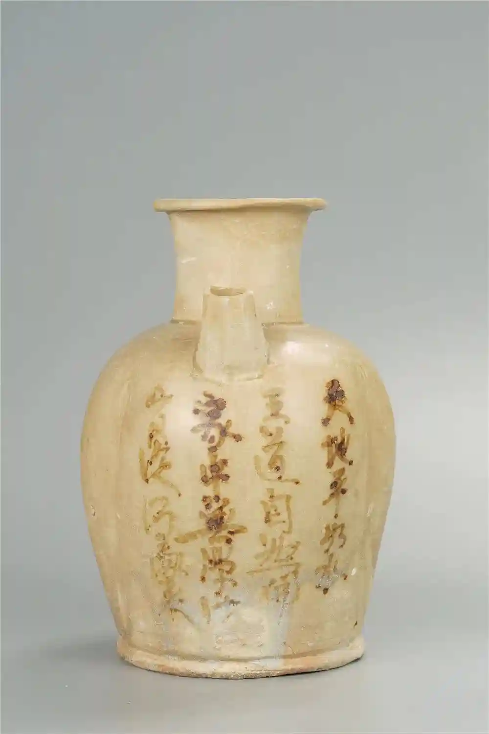 题诗的器物多出现于瓷壶上,这大概与唐人品茶饮酒的生活方式有关,酒的意象在唐诗中也比比皆是。这不得不提到唐代酒业管理宽松,在市井山野皆有酒家林立。在酒器上题写饮酒诗,既富生活气息,喝酒也更有情致,透露出一种洒脱与豪放。