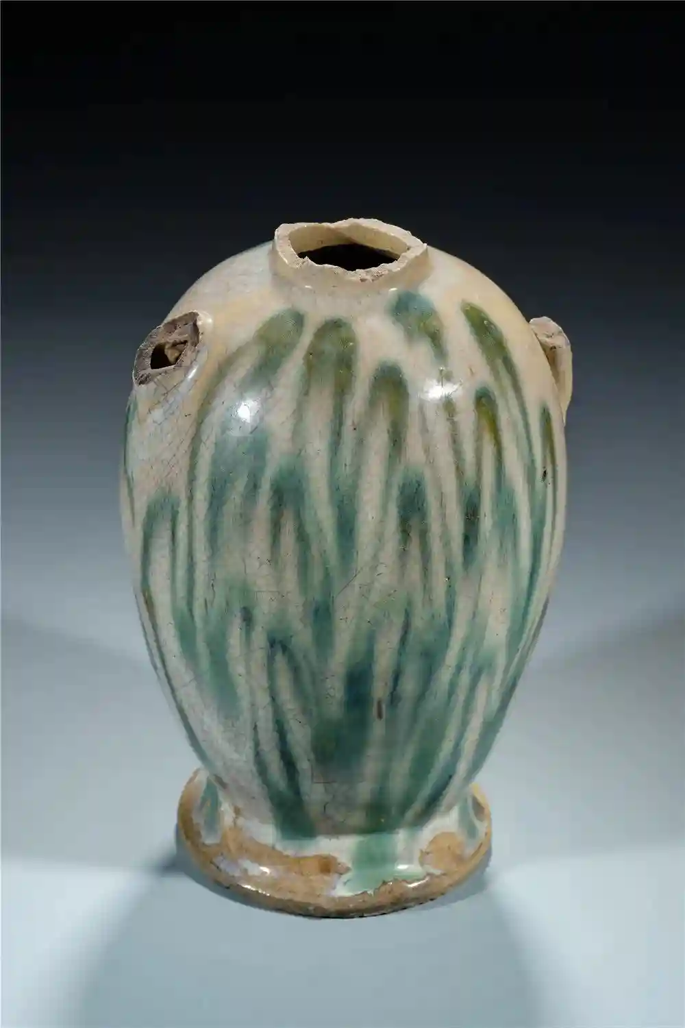 白釉绿彩瓷壶广州市德政中路担杆巷工地出土广州市文物考古研究院(南汉二陵博物馆)藏除港口外,长沙窑瓷器在国内其他地区的发现呈现出沿水系和运河分布的趋势,广州也出土有长沙窑瓷器。
