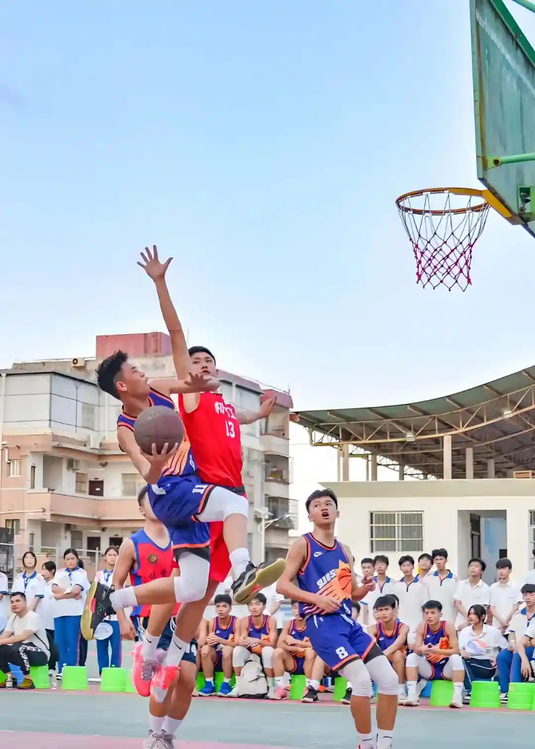 杰夫在中学时参加了校内篮球赛。